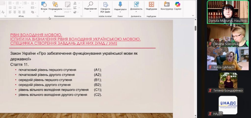 На відкритті заходу виступили Голова НАДС Наталія Алюшина, Голова Національної комісії зі стандартів державної мови Юлія Чернобров та директорка Вищої школи публічного управління Юлія Лихач.