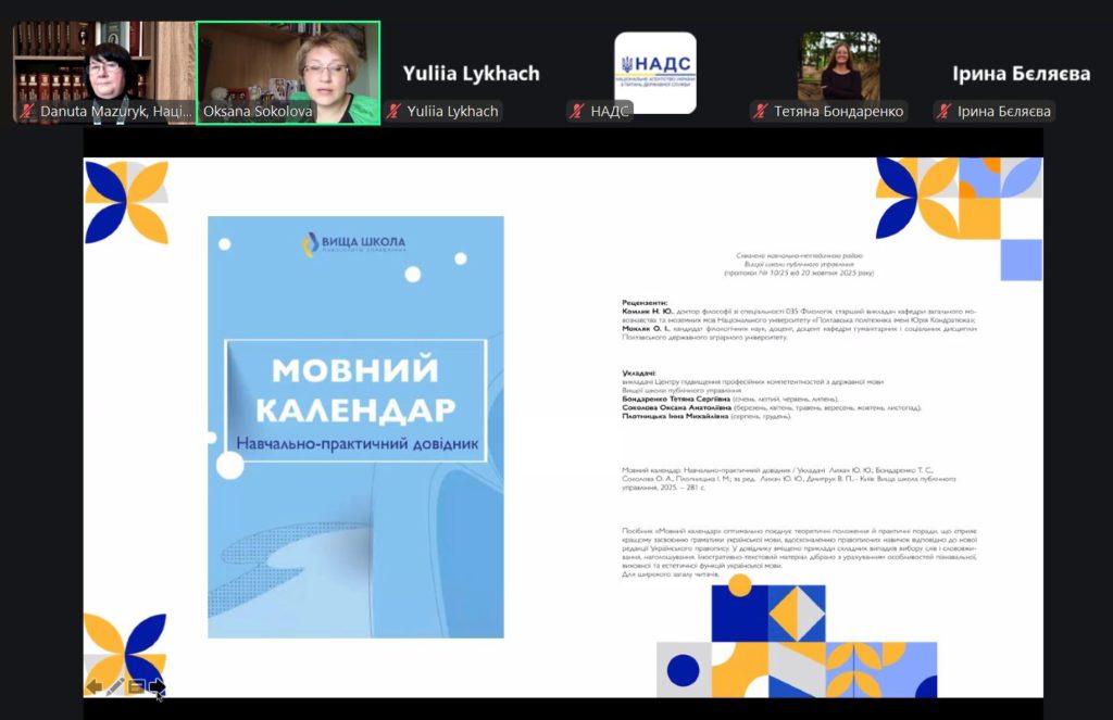 Крім того, уперше було представлено унікальний «Мовний календар» – практичний щоденний довідник, створений командою Вищої школи для професійної роботи з діловим і нормативним мовленням. Учасники назвали цю розробку «одним із найкорисніших сучасних мовних інструментів», який дозволяє вдосконалювати мовлення навіть декілька хвилин на день.