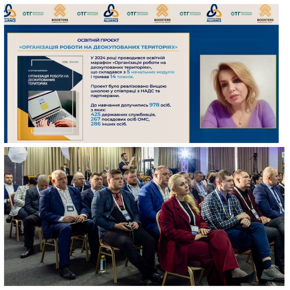 Ще одним масштабним напрямом стало підвищення кваліфікації публічних службовців через проєкт «Управління деокупованою територією». Протягом 2023-2025 рр. у рамках цього освітнього проєкту було проведено 25 програм підвищення кваліфікації, якими охоплено більше 2,5 тис. осіб.