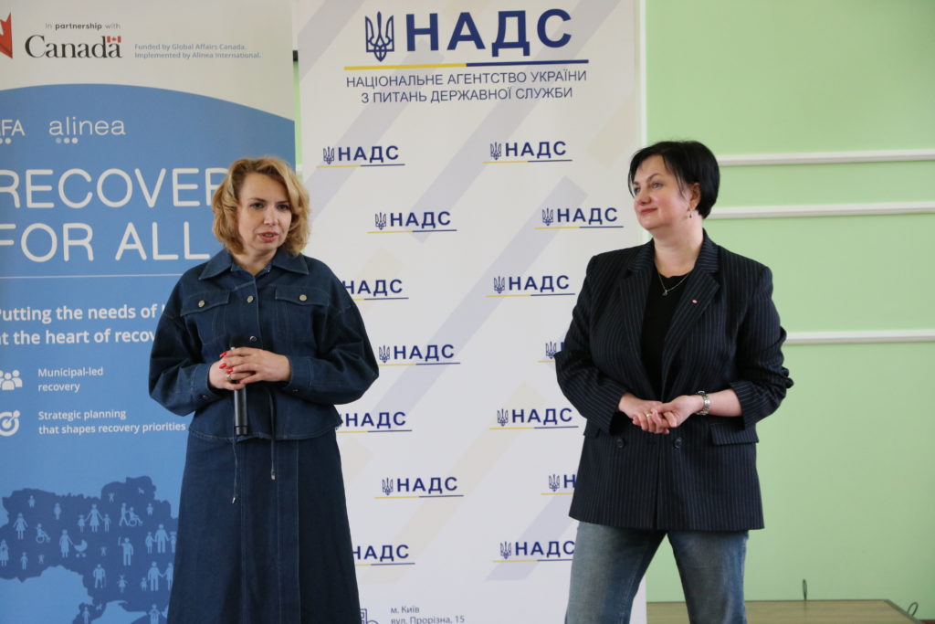 The program was opened by the Head of the National Agency of Ukraine on Civil Service, Nataliia Aliushyna, the Director of the Higher School of Public Governance, Yuliia Lykhach, and the Head of the GESI Planning Direction of the “Recovery for All” (RFA) project, Mariia Plaksenko.