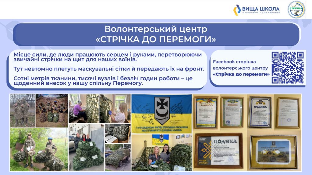 Окрема гордість Вищої школи – Волонтерський центр «Стрічка до перемоги», який працює з перших днів повномасштабного вторгнення.