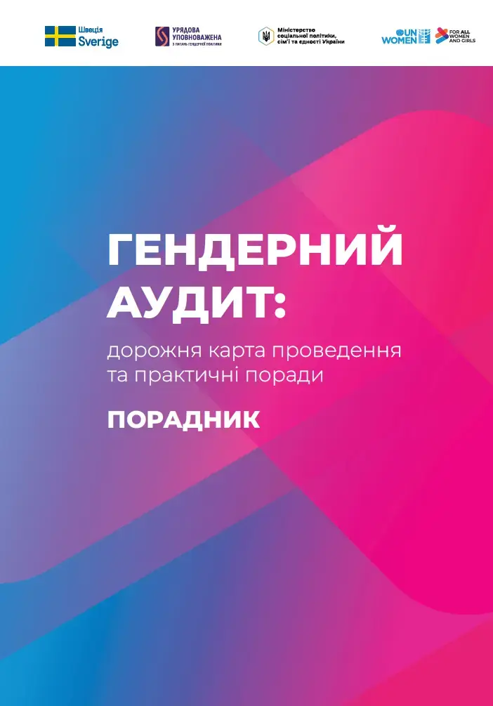Гендерний аудит є інструментом, що здатен допомогти проаналізувати, як принципи забезпечення рівних прав та можливостей жінок і чоловіків враховуються на рівні діяльності органів державної влади та місцевого самоврядування, підприємств та установ, а також надати рекомендації щодо кращої інтеграції гендерного підходу. Порадник розроблено ООН Жінки в Україні у співпраці з Апаратом Урядової уповноваженої з питань гендерної політики та Міністерством соціальної політики, сім’ї та єдності України, за фінансової підтримки Швеції. Окрім теоретичного матеріалу, порадник містить зразки необхідних для проведення гендерного аудиту документів.