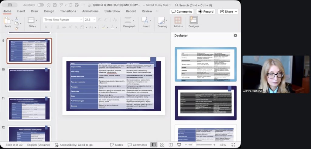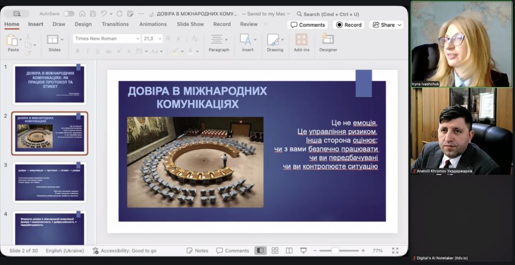 Окрему увагу під час заняття було приділено практичним аспектам ділової комунікації, які виходять за межі формальних протокольних норм. Зокрема, учасники обговорили: