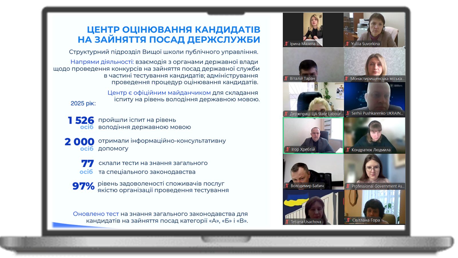 Своїм успішним досвідом з учасниками поділилися представники європейських шкіл державного управління Марек Табор, Керівник відділу освіти Коледжу Європи в Натоліні, Кйості Вакевайнен, директор Фінського інституту публічного управління (HAUS), Галина Смірнова, Старша спеціалістка Проєкту Ради Європи «HELP» (Освіта в галузі прав людини для юристів) для України, в тому числі під час війни».
